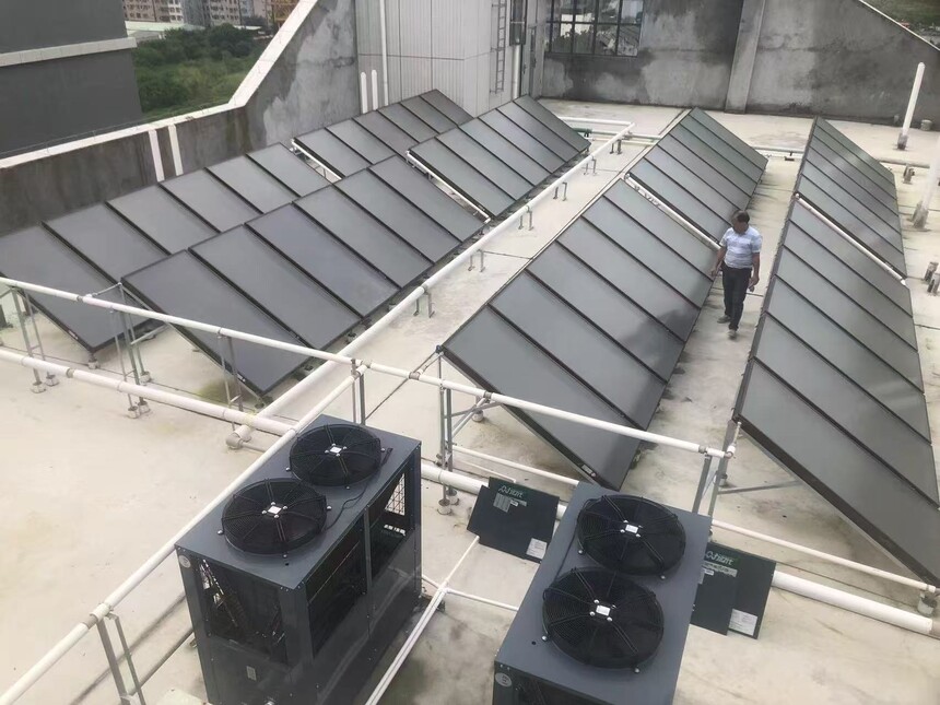 燊华集团绿色热水工程落地,太阳能+空气能联合系统日产热水50吨为响应国家绿色低碳号召,惠州市燊华集团携手我司打造了一项清洁能源热水示范项目。本项目采用“太阳能主导+空气能辅助”的联合供热模式,通过安装556平方米平板太阳能集热器,并配套4台20匹空气能热泵机组,实现每日稳定供应50吨、温度控制在50°C–80°C之间的生活及工艺用热水,全面满足集团热水需求的同时,显著降低运行成本与碳排放。 系统设计亮点: